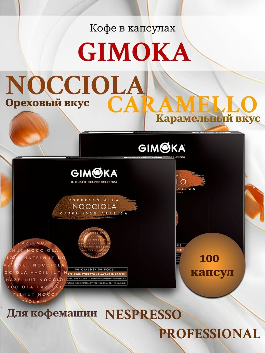 Купить Кофе в капсулах Gimoka Nocciola, Caramello. Espresso для кофемашин Nespresso Professional. 100 капсул с доставкой по всей России.
