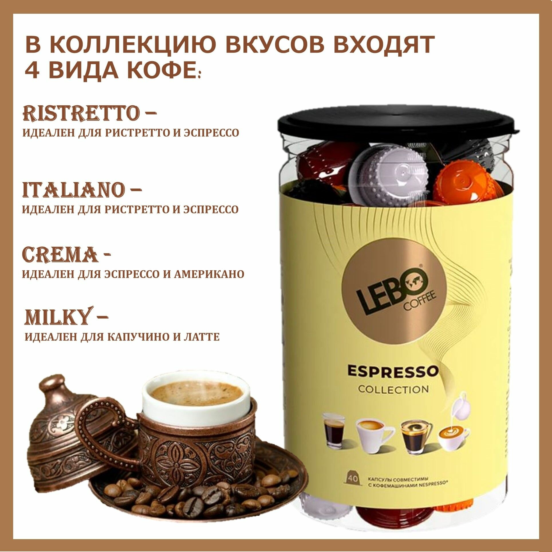 Кофе в капсулах Лебо Эспрессо Коллекшн (Lebo Espresso Collection) для кофемашин Nespresso 40 капсул * 5,5 г/ Россия: сравнение цен, характеристики, фото, актуальное наличие и цены.