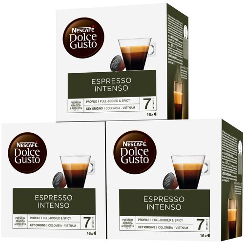 Откройте для себя Nescafé Dolce Gusto Espresso Intenso — это крепкий кофе средней обжарки. Этот короткий кофейный напиток обладает фруктово-пряным ароматом, гладкой консистенцией и богатой бархатистой пенкой. Наши профессиональные кофейные эксперты объединили фруктовые южноамериканские кофейные зерна арабики и робусты с кофе Nescafé Dolce Gusto Epresso Intenso и создали этот вкусный и ароматный кофе. Степень обжарки 7/11 Смесь робусты / арабики