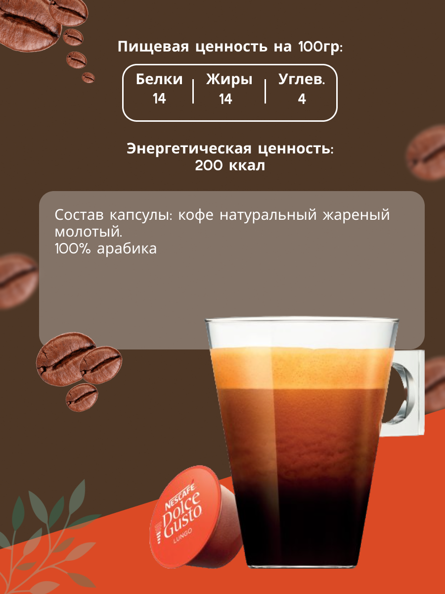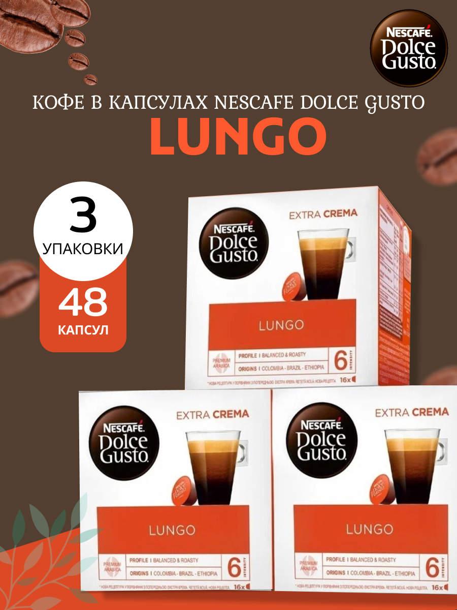 Кофе в капсулах Nescafe Dolce Gusto Lungo, средняя обжарка, арабика, 48 порций: сравнение цен, характеристики, фото, актуальное наличие и цены.