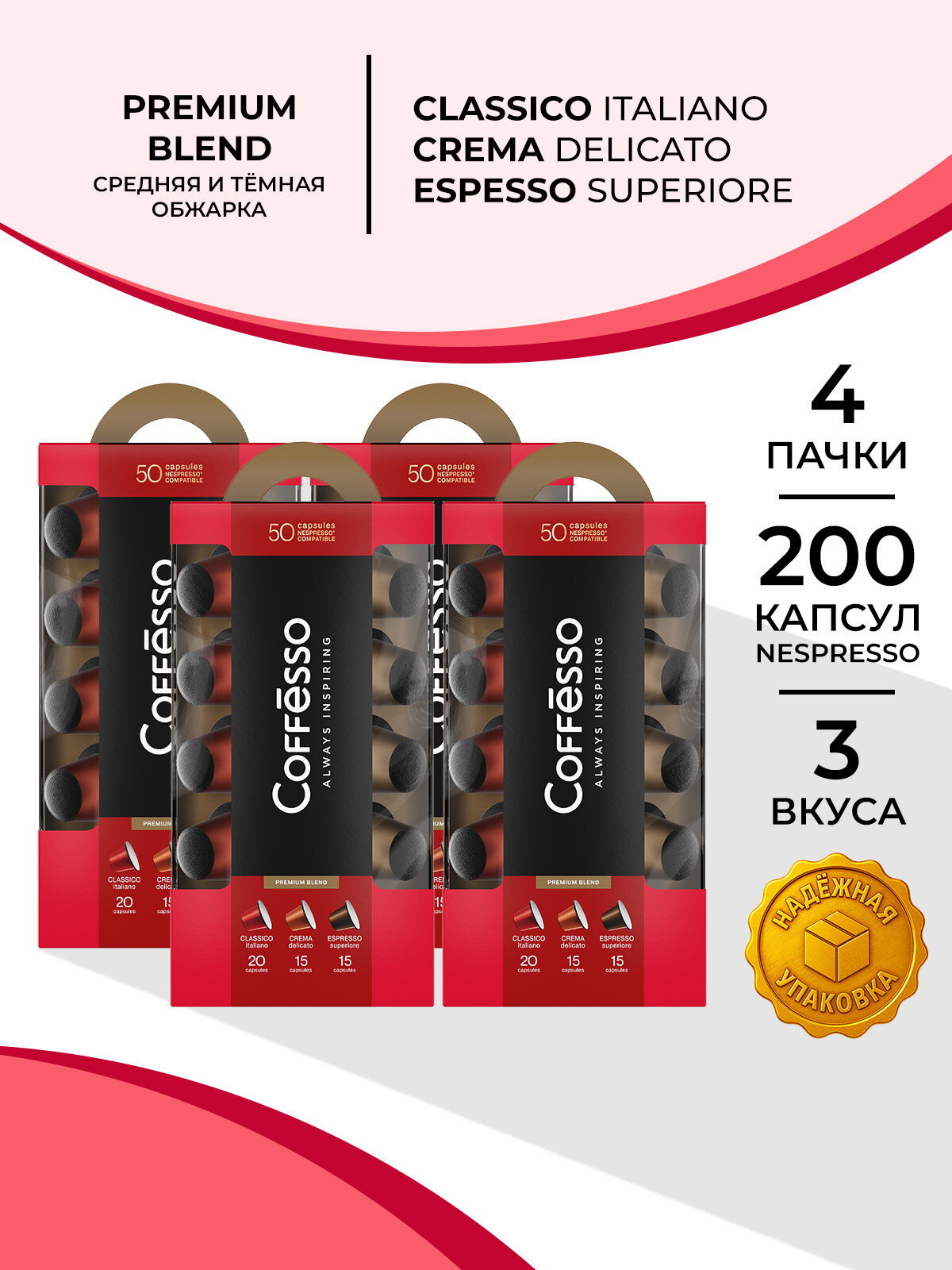 Купить Кофе в капсулах Nespresso Coffesso, ассорти, подарочный набор, 4 упаковки по 50 капсул с доставкой по всей России.