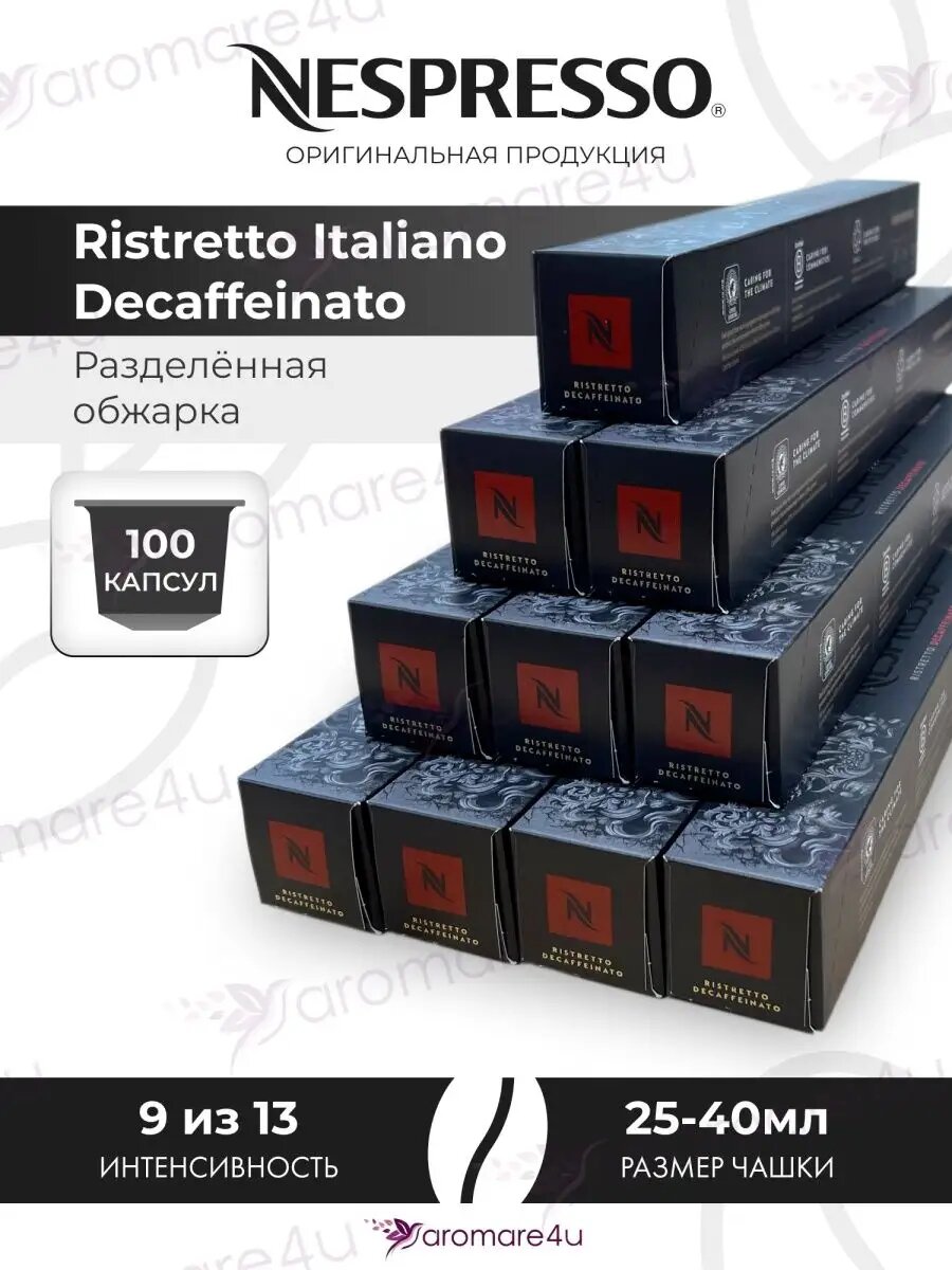 Кофе в капсулах Nespresso Ispirazione Ristretto Italiano Decaffeinato. Неспрессо. 10 уп. по 10 капсул.: сравнение цен, характеристики, фото, актуальное наличие и цены.