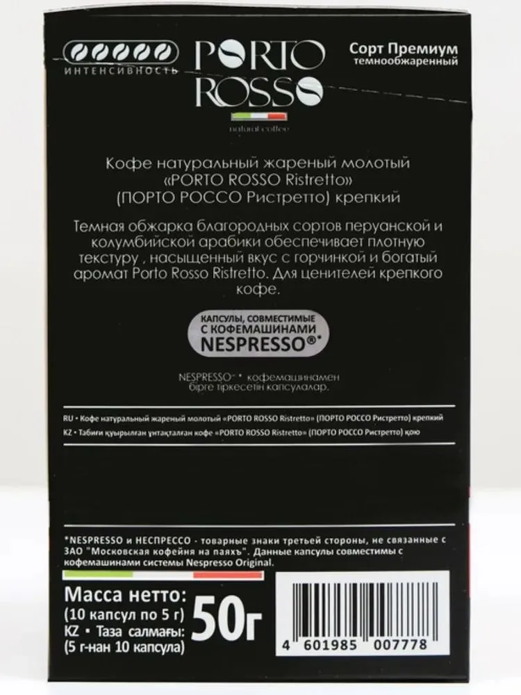 Купить Кофе в капсулах Porto Rosso Ristretto (для Nespresso) 10 капсул по 5 гр. с доставкой по всей России. Кофе в капсулах Porto Rosso Ristretto (для Nespresso) 10 капсул по 5 гр.: сравнение цен, характеристики, фото, актуальное наличие и цены.