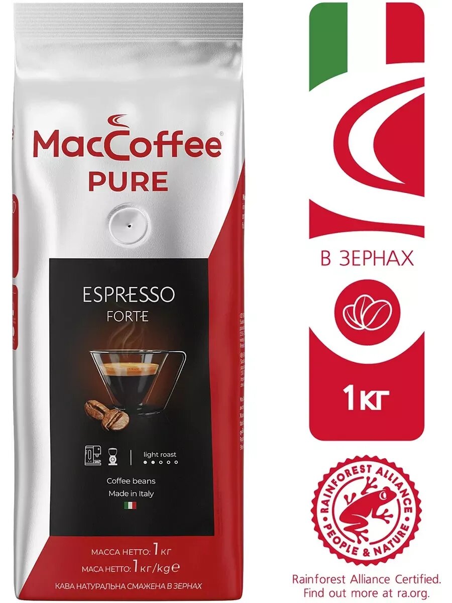 Кофе в MacCoffee PURE Espresso Forte зерно, 1000 г: сравнение цен, характеристики, фото, актуальное наличие и цены.