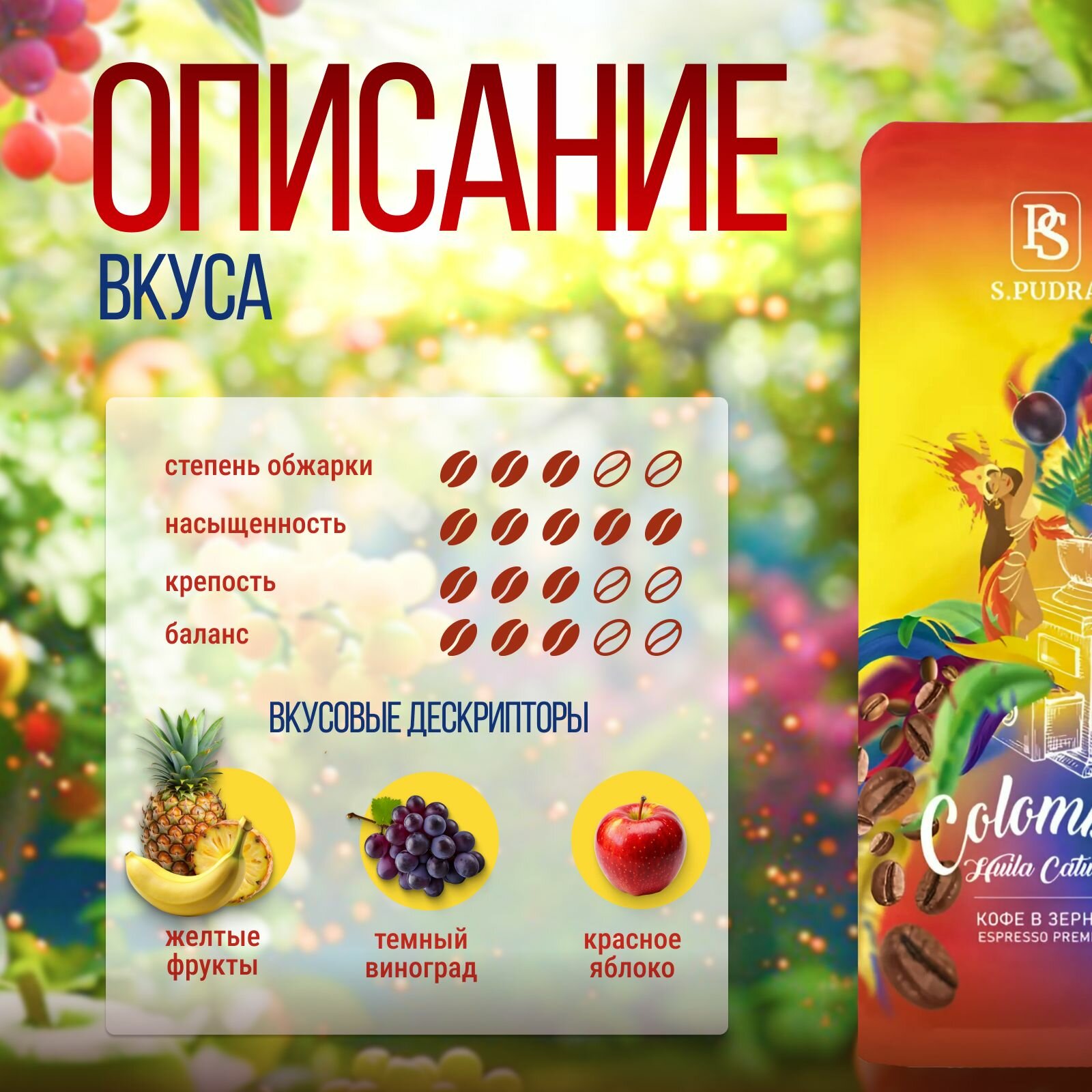 | Страна происхождения зерен кофе | Колумбия |