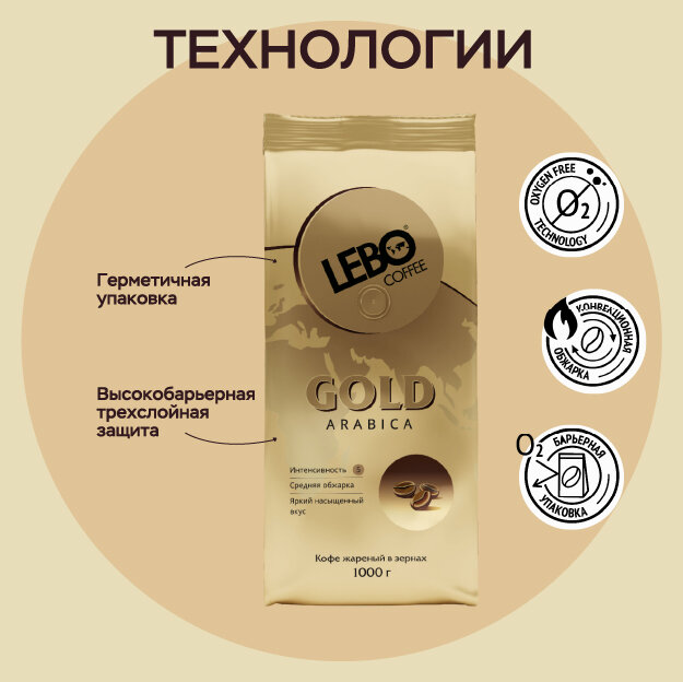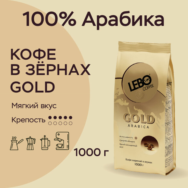 Купить Кофе Lebo Gold, 100% арабика, Колумбия/Никарагуа/Бразилия, 1кг с доставкой по всей России.