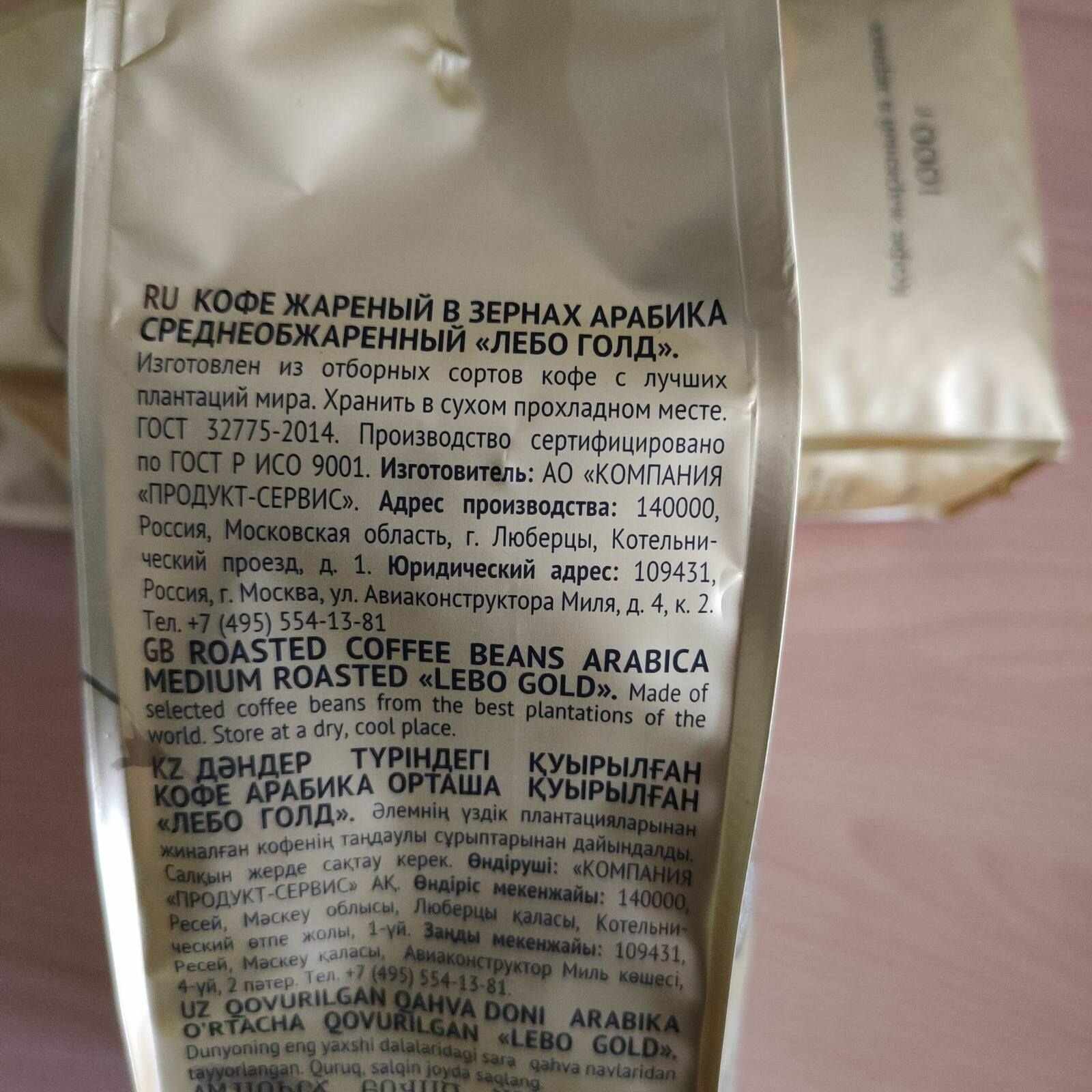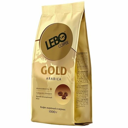 Купить Кофе 1000г зерно Арабика LEBO Gold натуральный средней обжарки, интенсивность 5 с доставкой по всей России.