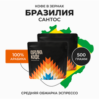 Кофе в зернах 500 гр, Бразилия сантос, 100% Арабика, свежеобжаренный, натуральный Стрелка кофе