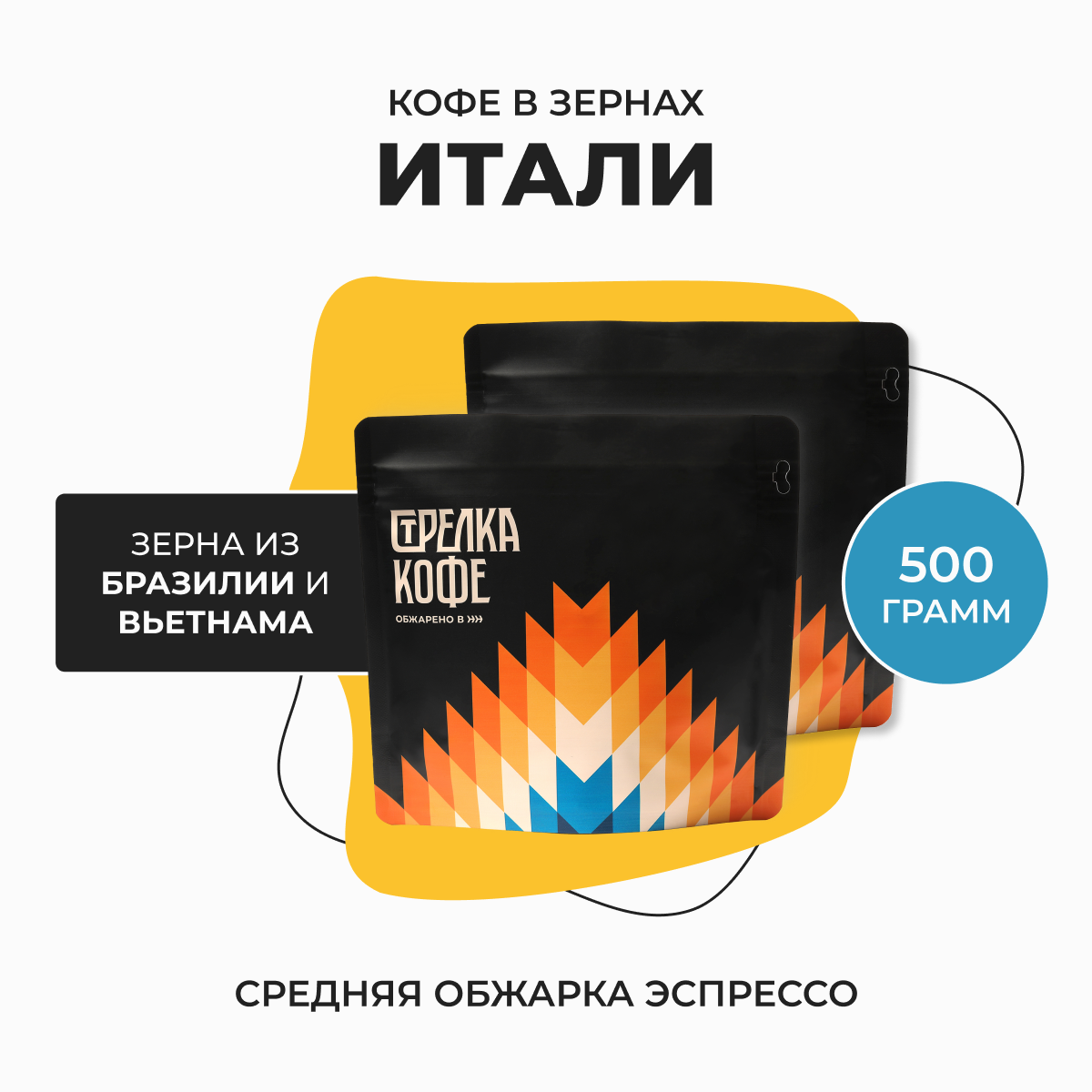 Кофе в зернах 500 гр, Итали Бленд 80% Арабика, 20% робуста, свежеобжаренный, натуральный, Стрелка кофе