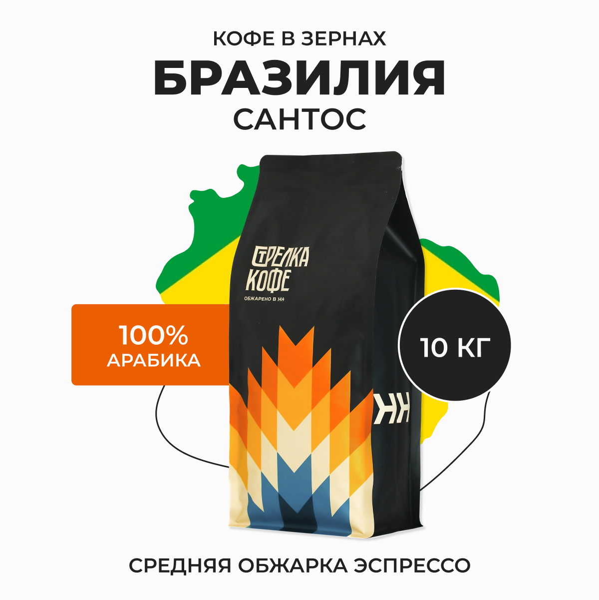 Купить Кофе в зернах Арабика 100% 10 кг, Бразилия сантос, свежеобжаренный, натуральный Стрелка кофе с доставкой по всей России.