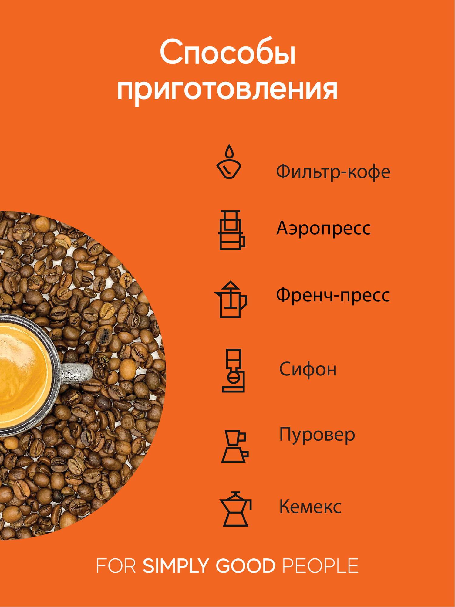 Способы приготовления. Один из лучших моносортов для приготовления фильтр-кофе. Он же подарит новый вкусовой опыт, если вы привыкли готовить напитки дома альтернативными методами: в кемексе, френч-прессе, пуровере, капельной кофеварке.