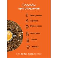 Способы приготовления. Подходящий вариант для приготовления фильтр-кофе, в гейзерной кофеварке и в кружке. Также раскрывается при приготовлении альтернативными способами: в пуровере, кемексе, френч-прессе, капельной кофеварке.