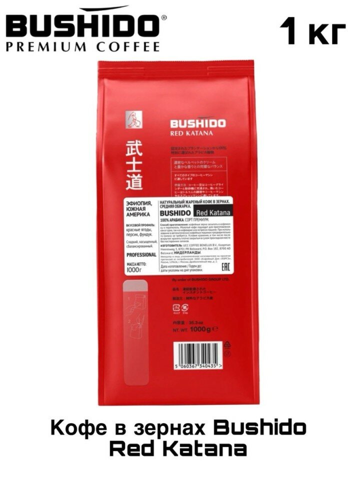 Купить Кофе в зернах Bushido Red Katana 1 кг 2 штуки с доставкой по всей России.