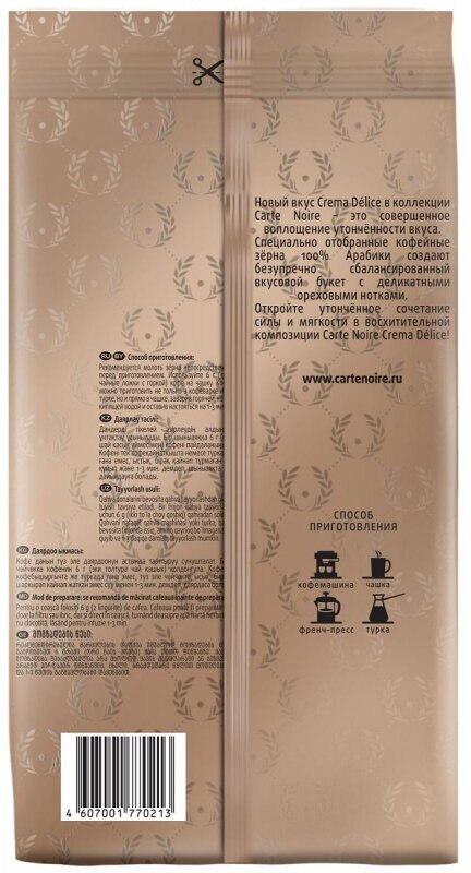 | Дополнительная информация | способ приготовления: рекомендуется молоть зерна непосредственно перед приготовлением; используйте 6 г (две чайные ложки с горкой) молотого кофе на чашку; кофе можно приготовить не только в кофеварке или турке, но и прямо в чашке, заварив горячей, но не кипящей водой и оставив настояться на 1-3 мин |
