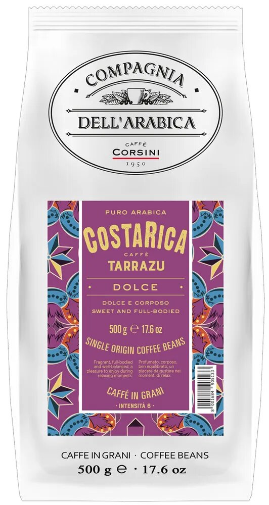 Кофе в зернах Compagnia Dell` Arabica Costa Rica Tarrazu 500 г, 100% арабика, средняя обжарка: сравнение цен, характеристики, фото, актуальное наличие и цены.