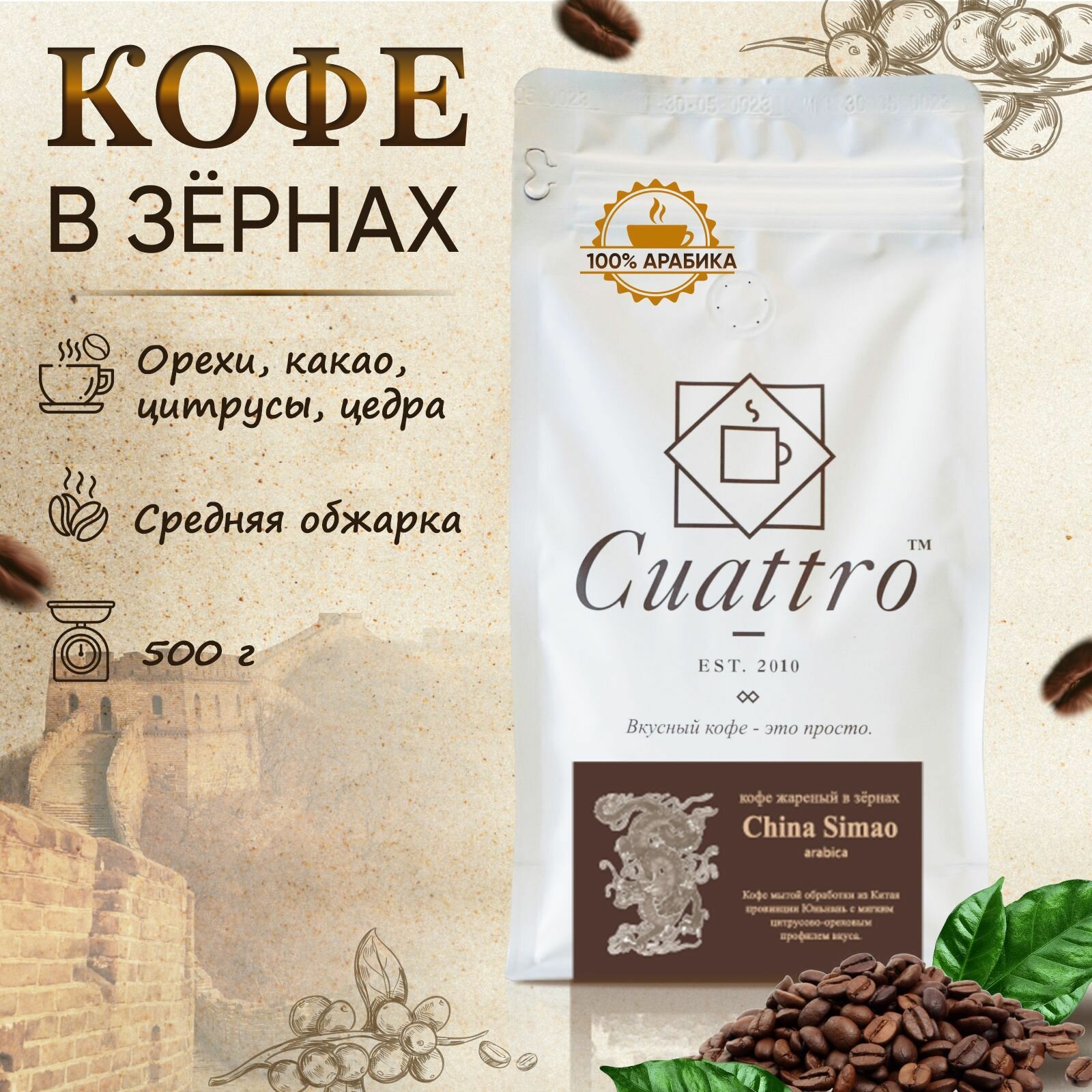 Кофе в зернах CUATTRO Китай Симао Гр.1 Меллоу мытый 500 г, арабика 100%, средняя обжарка