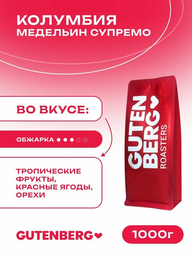 Кофе в зернах Gutenberg Колумбия Медельин Супремо 1 кг.: сравнение цен, характеристики, фото, актуальное наличие и цены.