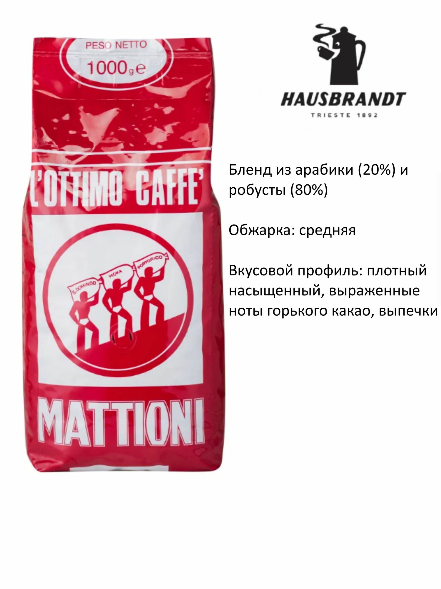 Кофе в зернах HAUSBRANDT Mattioni, 1000 гр. (Италия): сравнение цен, характеристики, фото, актуальное наличие и цены.