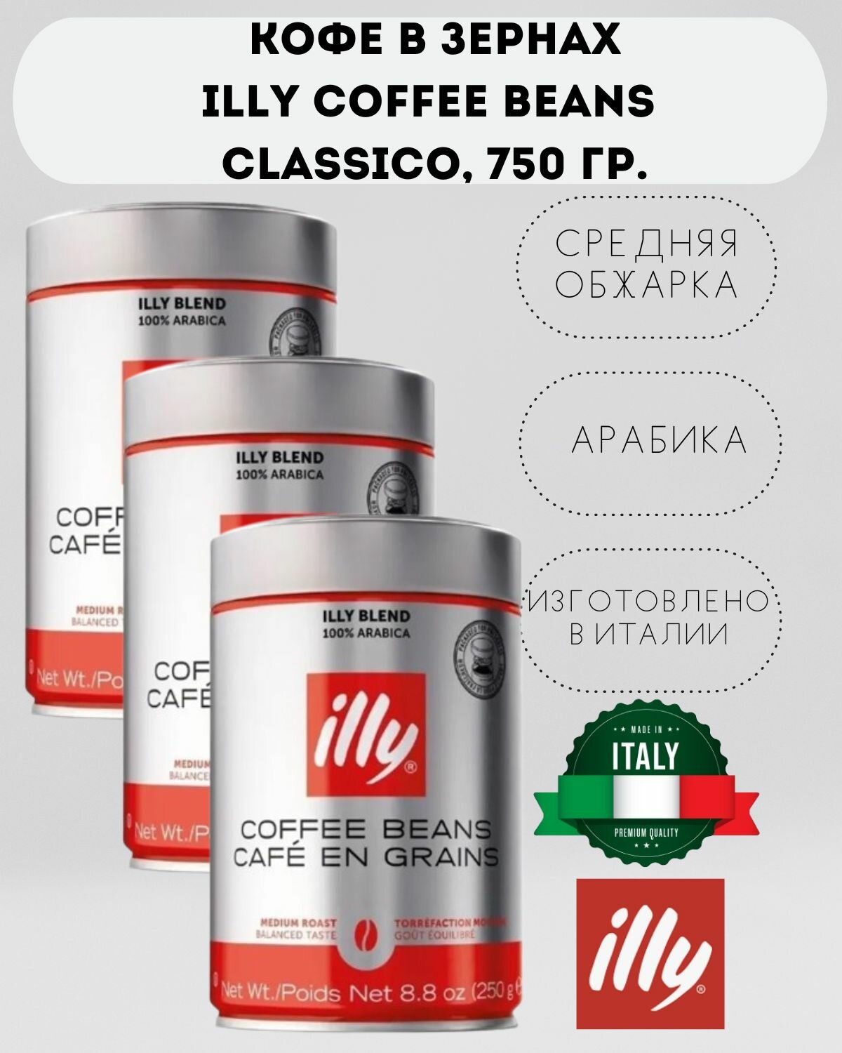 Кофе в зернах illy, COFFEE BEANS CLASSICO (илли Кофейные зерна Классико), средняя обжарка, арабика, 3 шт по 250 г.: сравнение цен, характеристики, фото, актуальное наличие и цены.