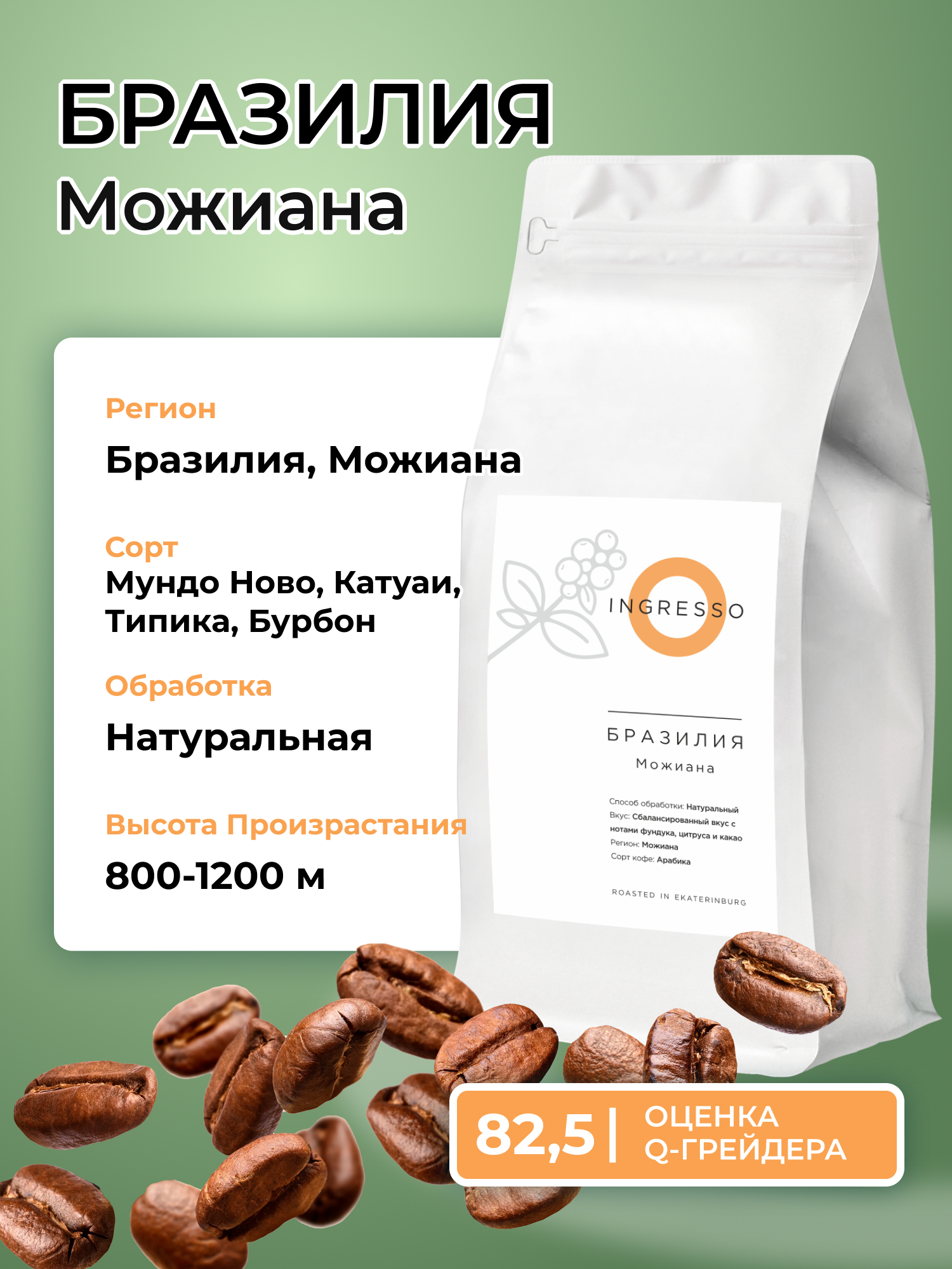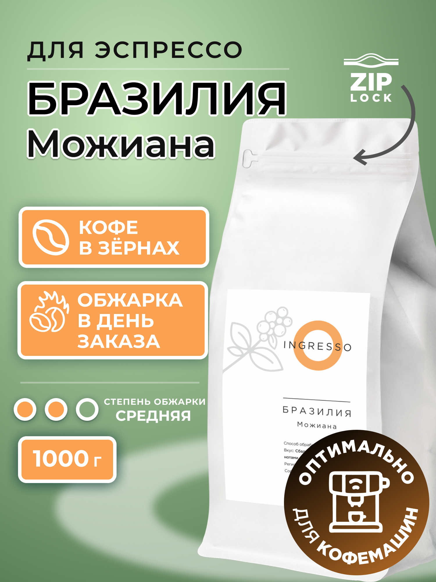 Кофе в зернах Ingresso Бразилия Можиана, 100% арабика, свежеобжаренный, 1 кг: сравнение цен, характеристики, фото, актуальное наличие и цены.