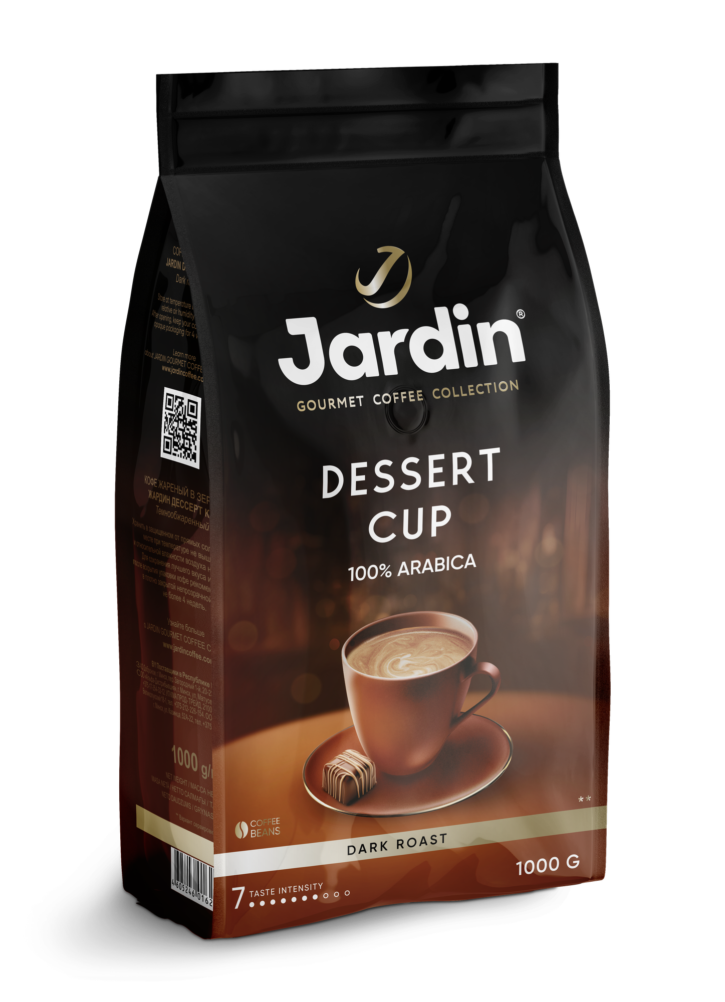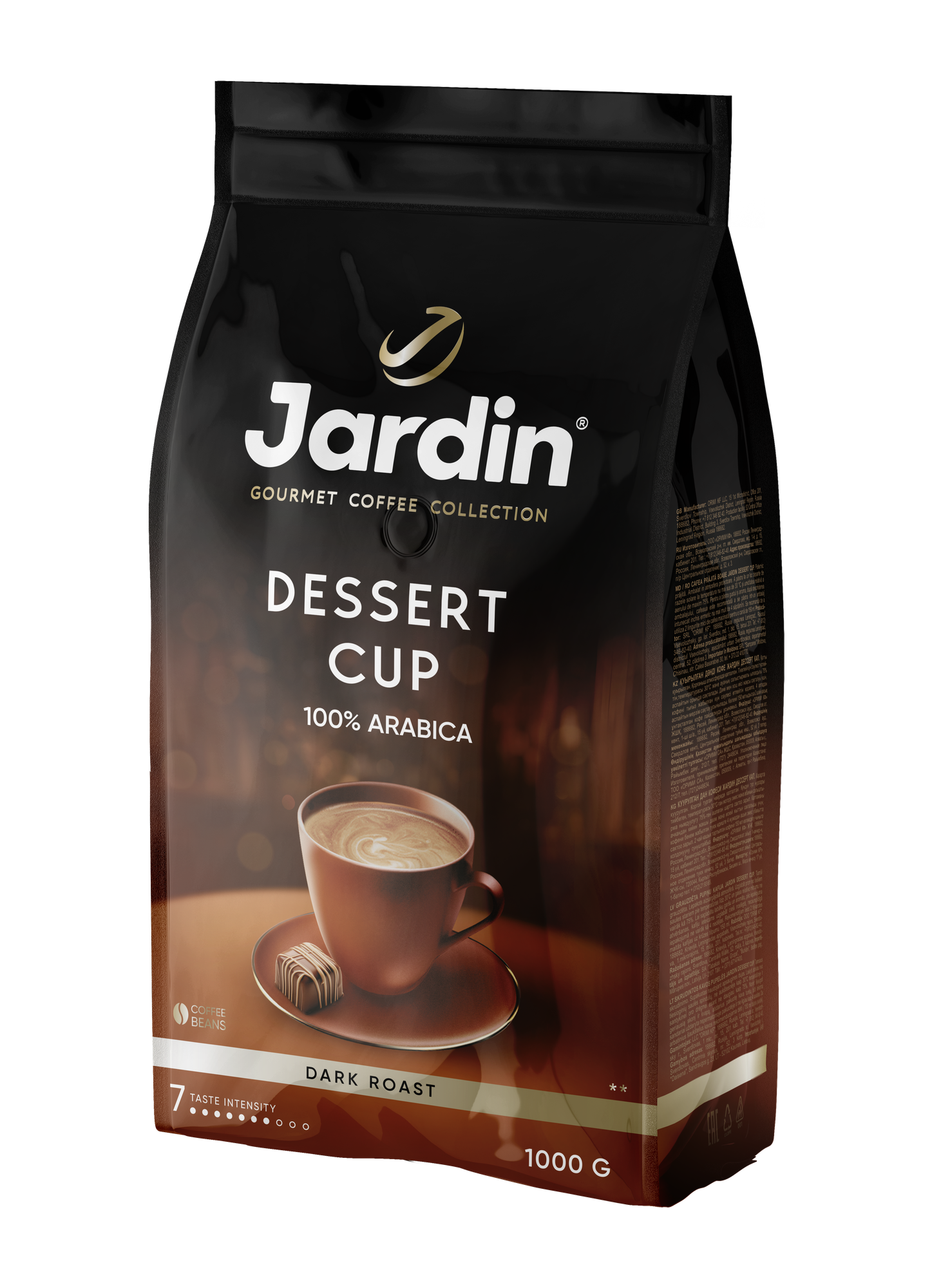 Кофе в зёрнах Jardin Dessert Cup — это изысканный выбор для ценителей качественного кофе. Упаковка весом 1 кг позволяет наслаждаться ароматным напитком в любое время. Кофе Jardin Dessert Cup — это gourmet-бленд отборных зёрен арабики из Африки и Центральной Америки. Тщательно выверенное сочетание кофейных зёрен и тёмная обжарка (4 из 5 по шкале производителя) создают плотный насыщенный вкус с деликатной фруктовой кислинкой и долгое послевкусие, наполненное сладостью великолепного десерта. Кофе обжаривается при помощи технологии Thermo Two — традиционная барабанная жарка с конвекцией, что способствует равномерной прожарке и наилучшему сохранению аромата.