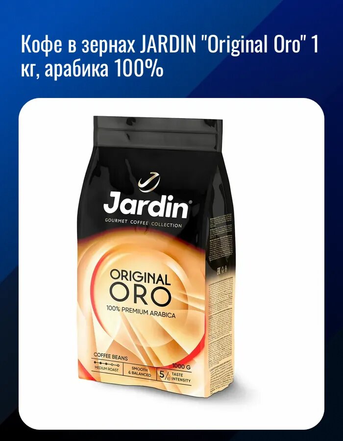 Купить Кофе в зернах JARDIN «Original Oro» 1 кг, арабика 100% с доставкой по всей России. Кофе в зернах JARDIN «Original Oro» 1 кг, арабика 100%: сравнение цен, характеристики, фото, актуальное наличие и цены.