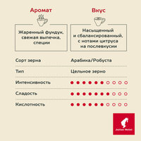 Кофе в зернах Jubilaum (Юбилейный) – премиальный бленд кофе настоящей венской обжарки, характеризуется насыщенным и сбалансированным вкусом с нотами цитруса на послевкусии. В аромате жаренный фундук, свежая выпечка, специи. Тело бархатистое и обволакивающее.