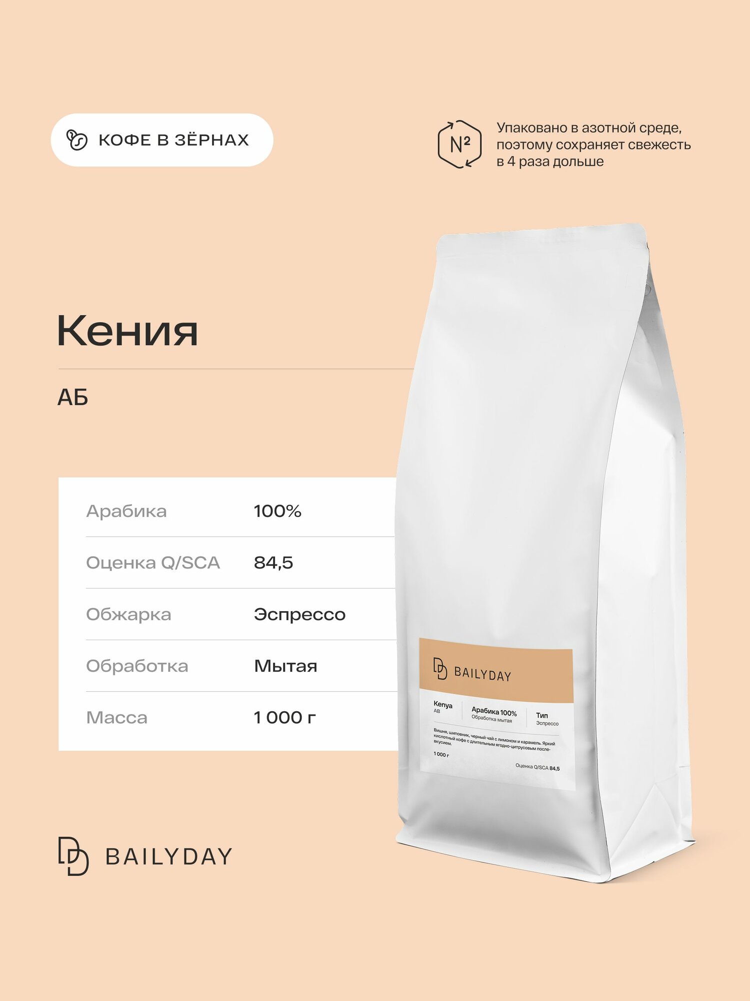 Кофе в зернах Кения АБ Bailyday, 100% арабика, обжарка под эспрессо, 1 кг: сравнение цен, характеристики, фото, актуальное наличие и цены.