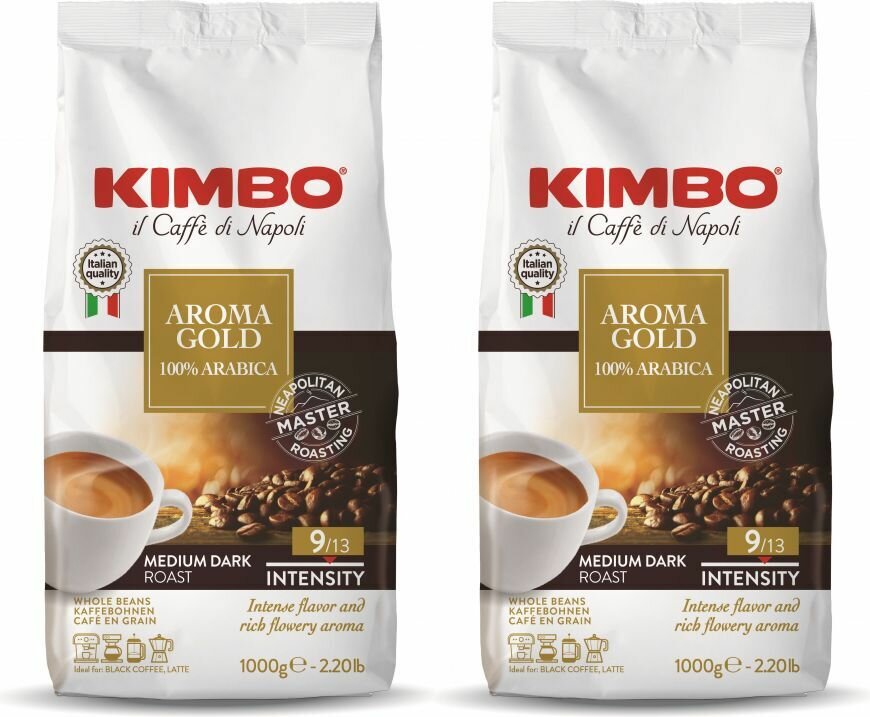 Кофе в зернах «Kimbo Aroma Gold», арабика, средняя обжарка, 100%, 2 упаковки по 1кг: сравнение цен, характеристики, фото, актуальное наличие и цены.