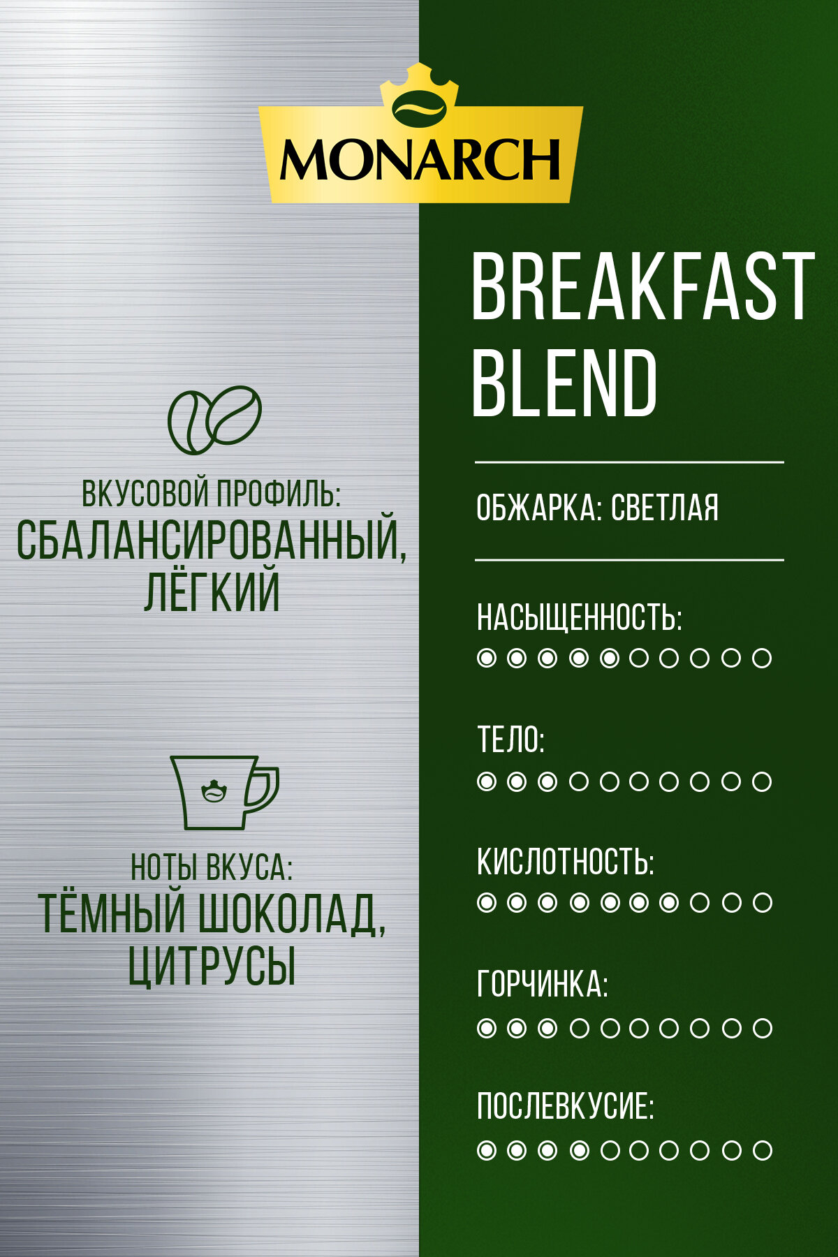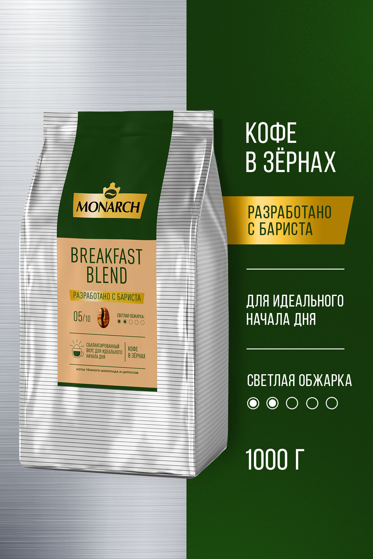 Кофе в зернах Monarch Breakfast, 1 кг: сравнение цен, характеристики, фото, актуальное наличие и цены.