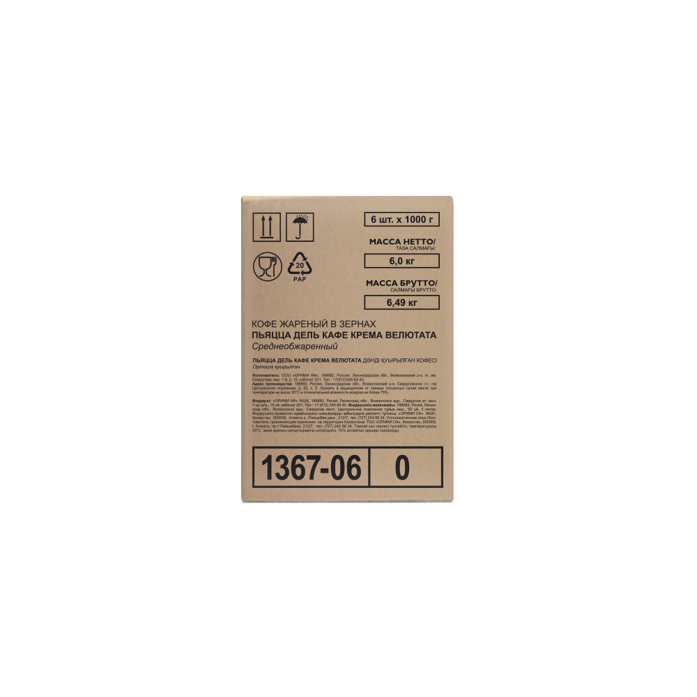 Кофе в зернах Пьяцца Дель каффе крема велютатте PIAZZA del CAFFE Crema Vellutata, кофе зерновой 1000 г Мягкий ровный напиток, обладающий приятным коротким послевкусием. "Gusto delicato – la crema vellutata" (деликатный вкус – бархатная пенка). При работе в вендинге добавляет сливочности напиткам.
