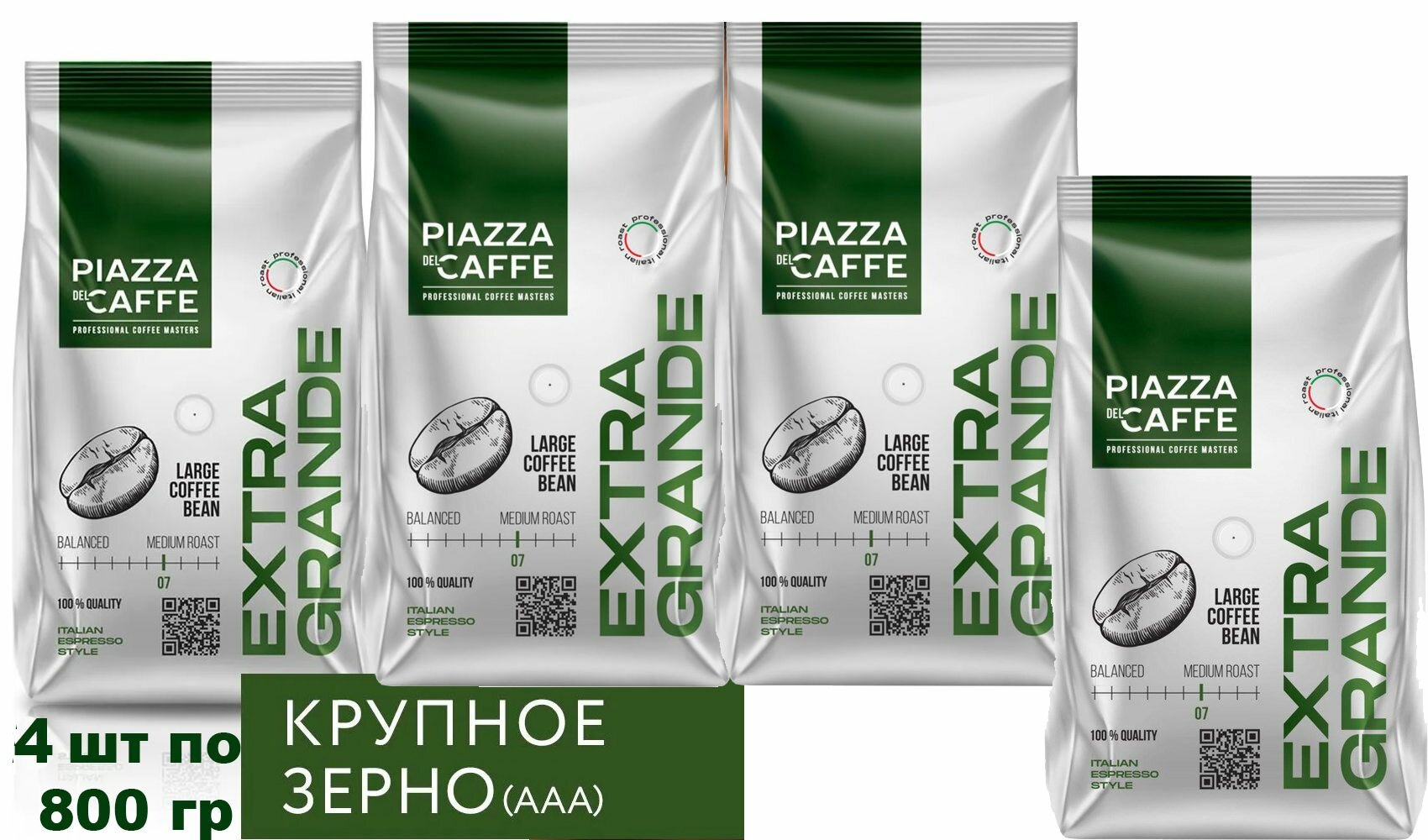 Кофе в зернах Piazza del Caffe Extra Grande (особо крупные зерна) 800 гр. х 4 шт.: сравнение цен, характеристики, фото, актуальное наличие и цены.