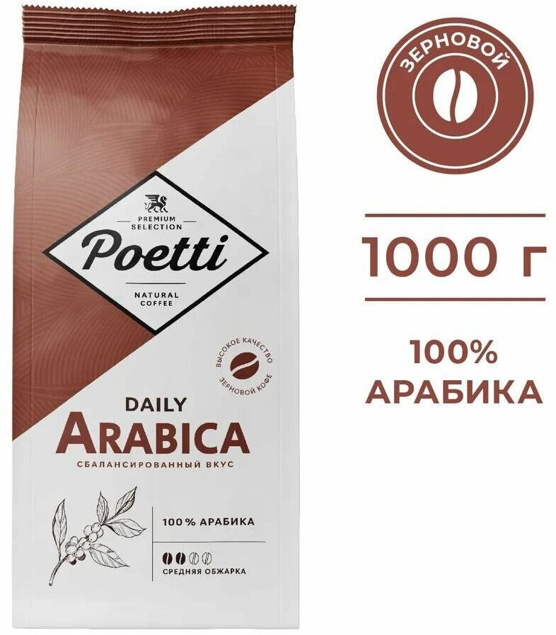 Кофе в зернах Poetti Arabica 1кг, 100% арабика + ложка: сравнение цен, характеристики, фото, актуальное наличие и цены.