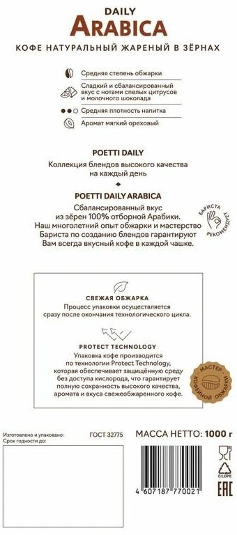 Купить Кофе в зернах Poetti Arabica 1кг, 100% арабика + ложка с доставкой по всей России.