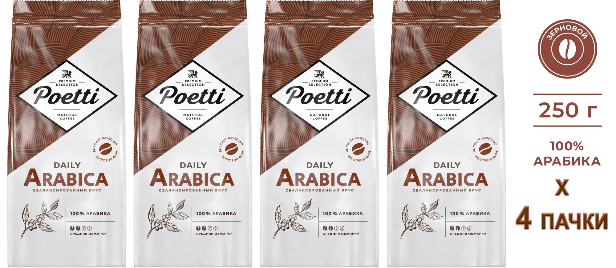 Кофе в зернах Poetti (ex-PAULIG) Daily 100% ARABICA 250 гр. х 4 шт.: сравнение цен, характеристики, фото, актуальное наличие и цены.