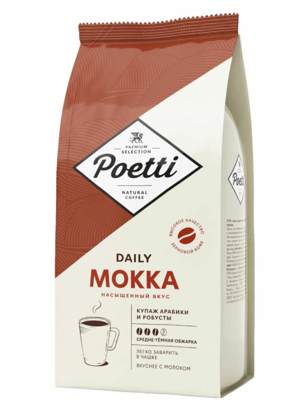 Кофе в зернах Poetti Mokka Арабика/Робуста, высокая интенсивность 1 кг: сравнение цен, характеристики, фото, актуальное наличие и цены.