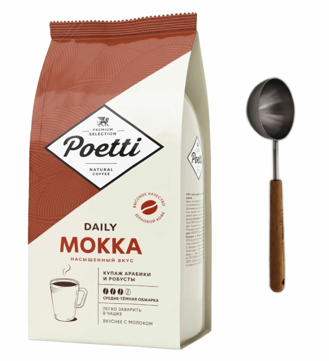 Кофе в зернах Poetti Mokka Арабика/Робуста, высокая интенсивность 1 кг + ложка: сравнение цен, характеристики, фото, актуальное наличие и цены.