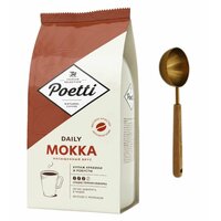Кофе в зернах Poetti Mokka Арабика/Робуста, высокая интенсивность 1 кг + ложка