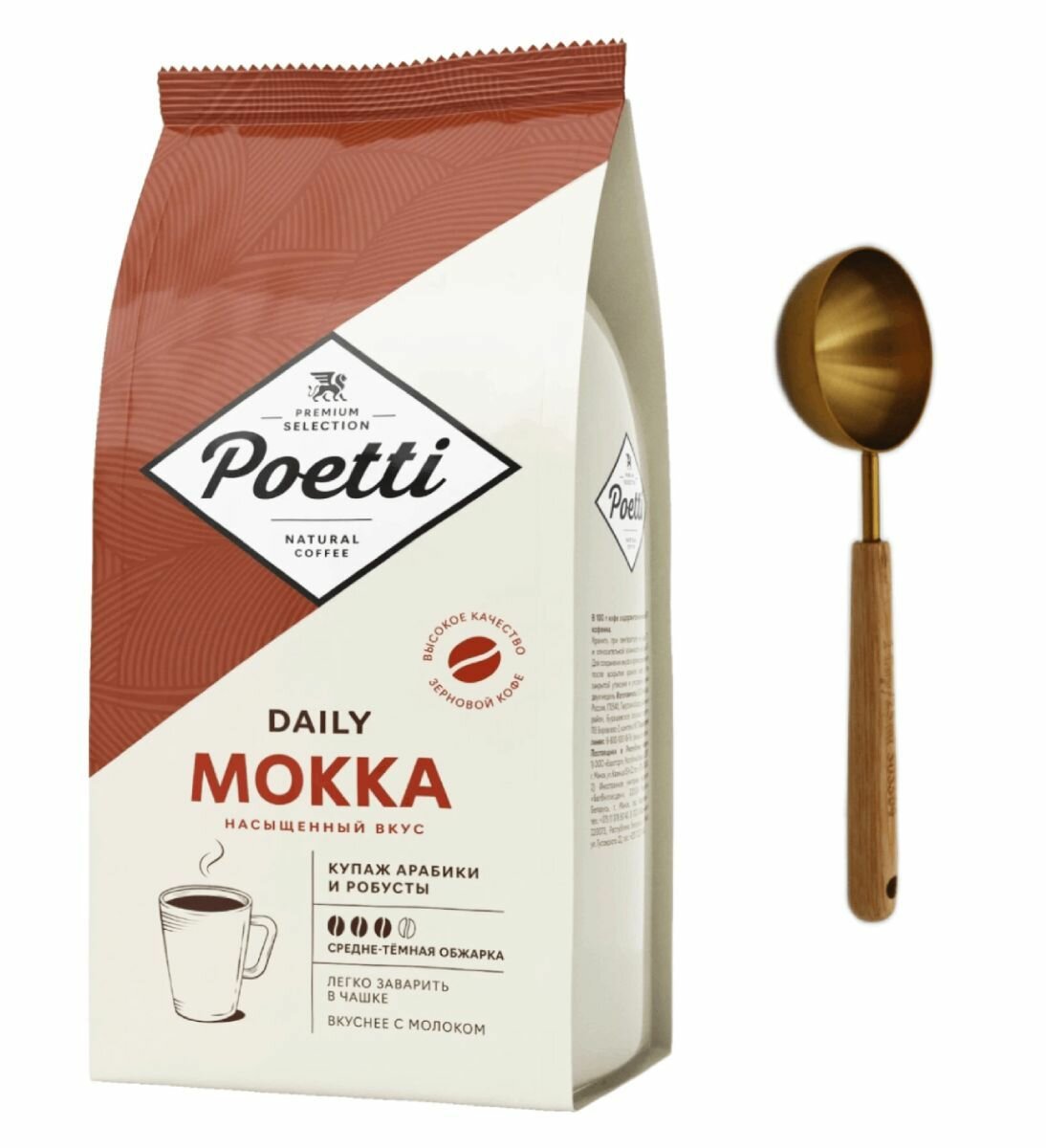 Купить Кофе в зернах Poetti Mokka Арабика/Робуста, высокая интенсивность 1 кг + ложка с доставкой по всей России.