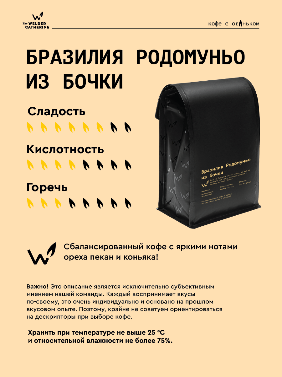 Кофе в зернах Сварщица Екатерина Бразилия Родомуньо из бочки под эспрессо — 1 кг: сравнение цен, характеристики, фото, актуальное наличие и цены.