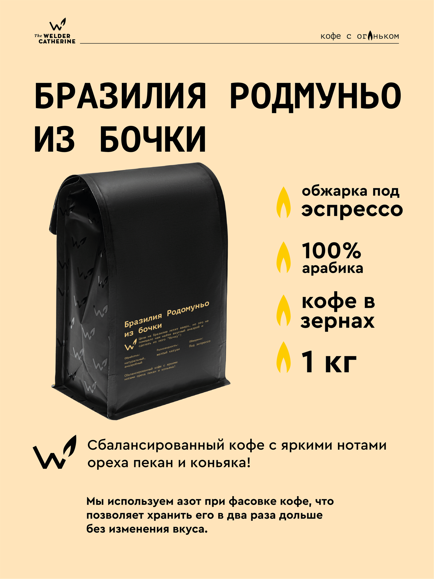Купить Кофе в зернах Сварщица Екатерина Бразилия Родомуньо из бочки под эспрессо — 1 кг с доставкой по всей России.