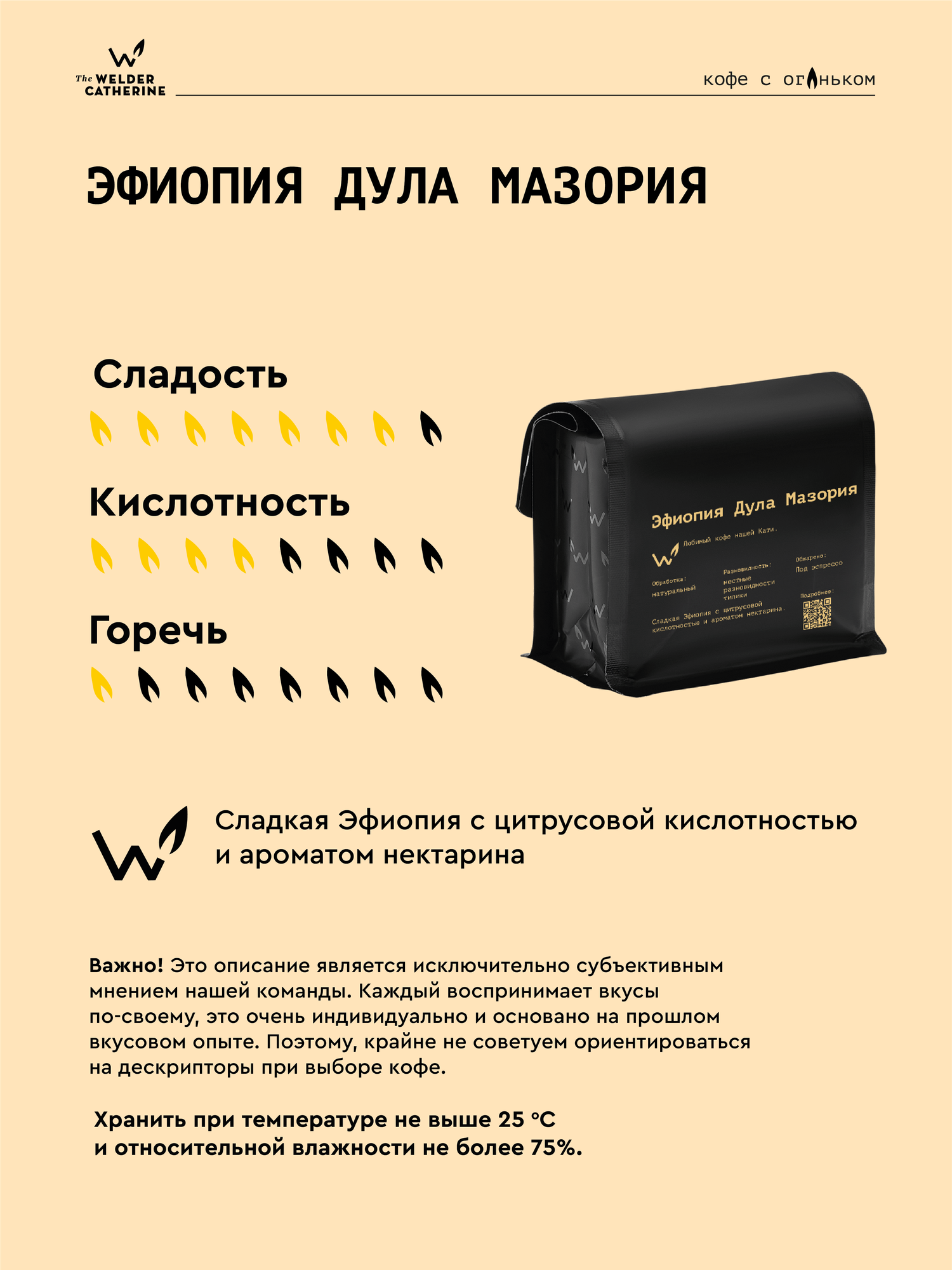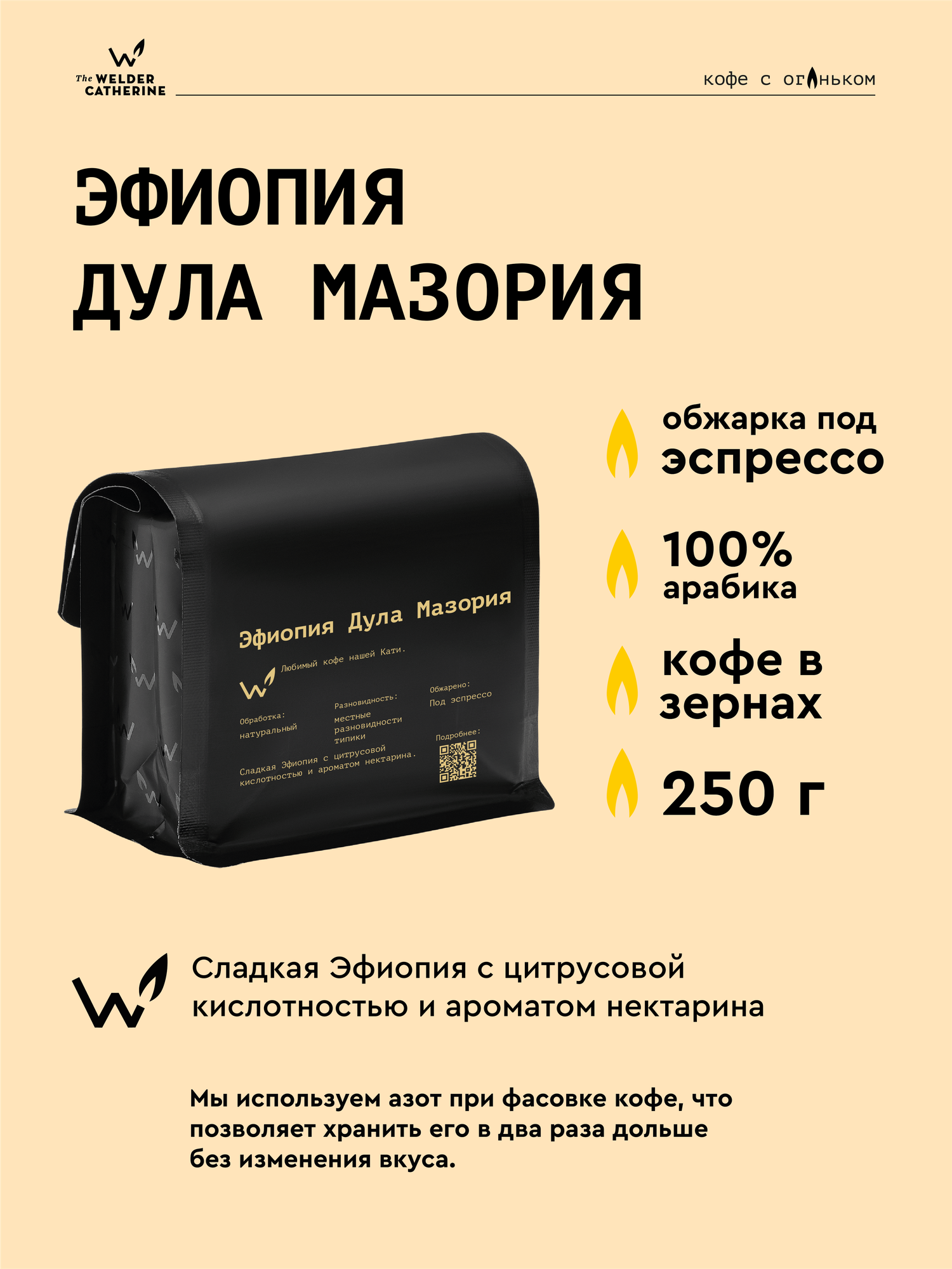 Купить Кофе в зернах Сварщица Екатерина Эфиопия Дула Мазория под эспрессо — 250 гр с доставкой по всей России.