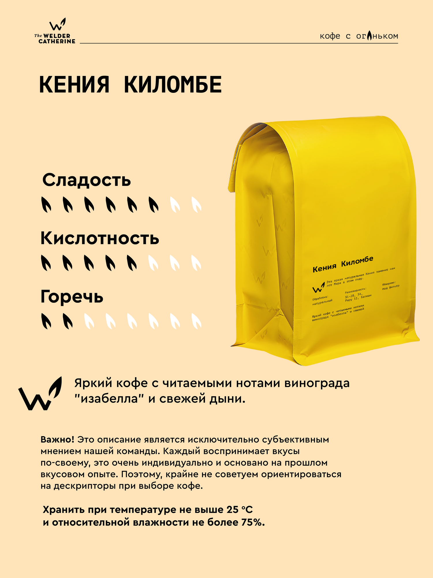 Купить Кофе в зернах Сварщица Екатерина Кения Киломбе под фильтр — 1 кг с доставкой по всей России.