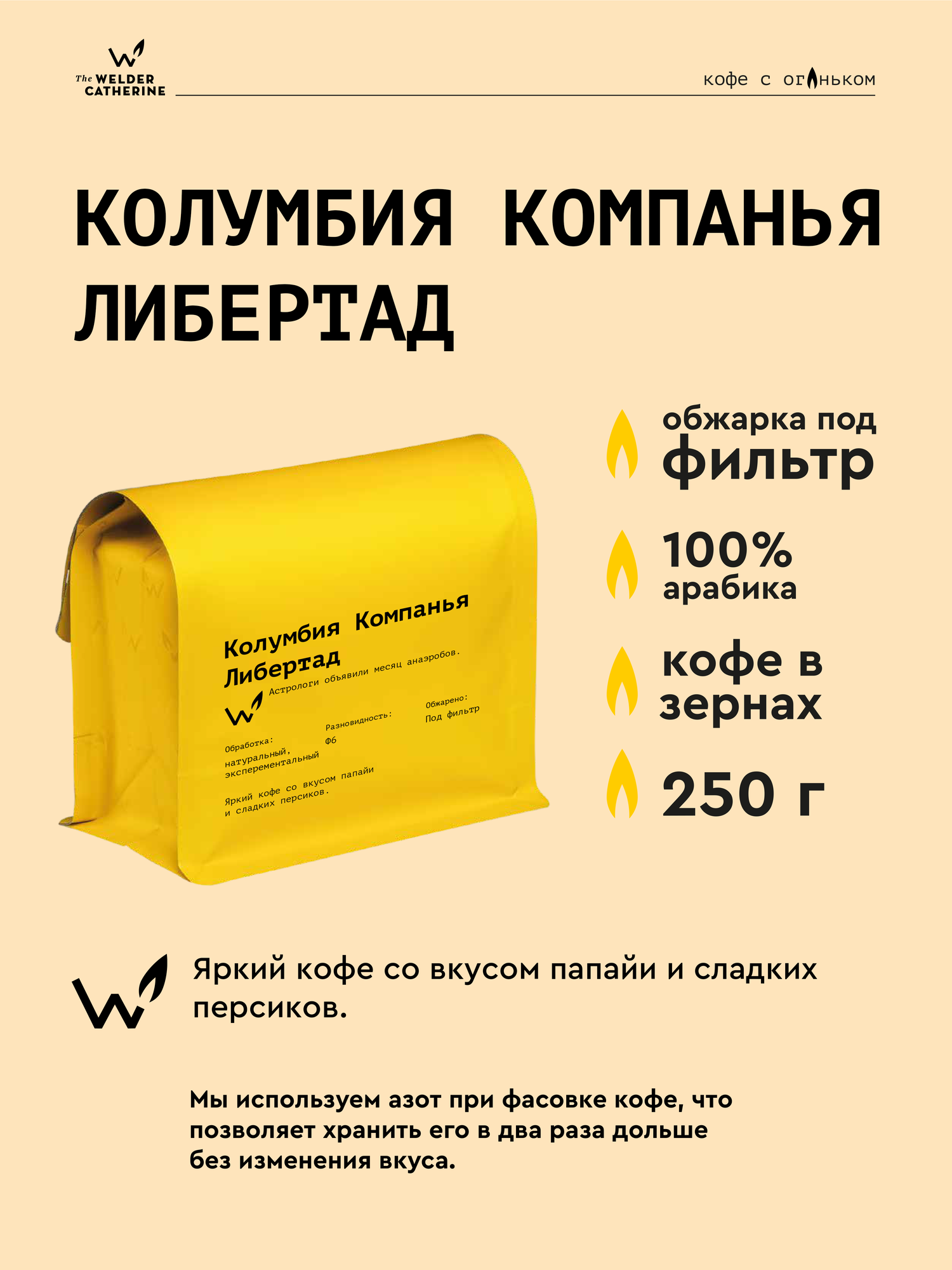 Купить Кофе в зернах Сварщица Екатерина Колумбия Компанья Либертад под фильтр — 250 гр с доставкой по всей России.