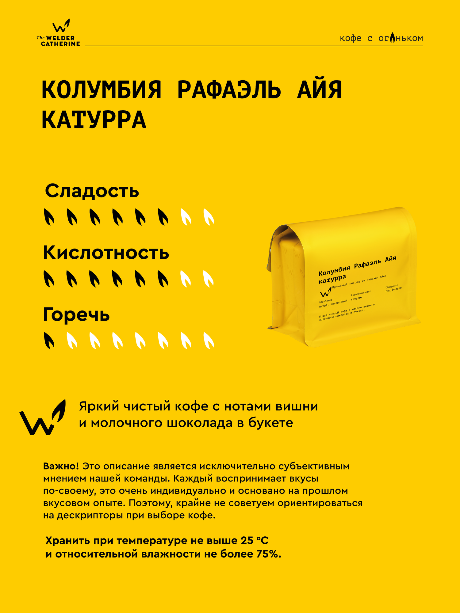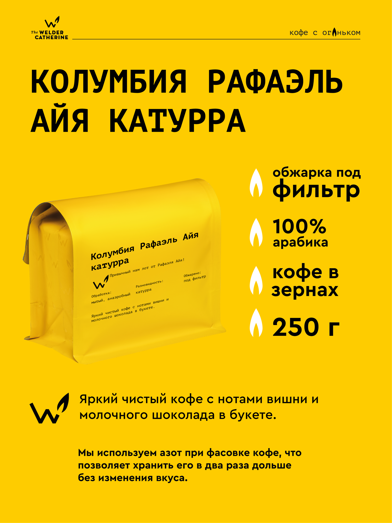 Кофе в зернах Сварщица Екатерина Колумбия Рафаэль Айя катурра под фильтр — 250 гр: сравнение цен, характеристики, фото, актуальное наличие и цены.