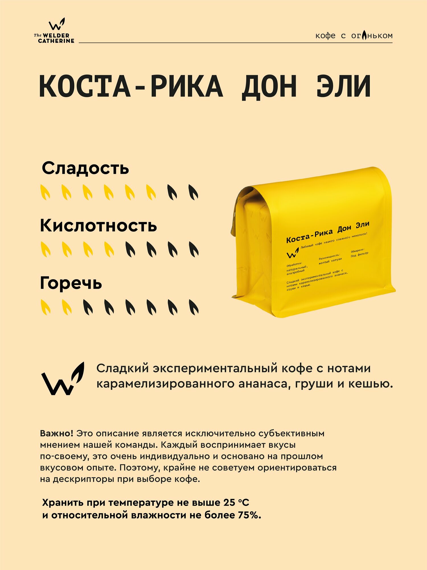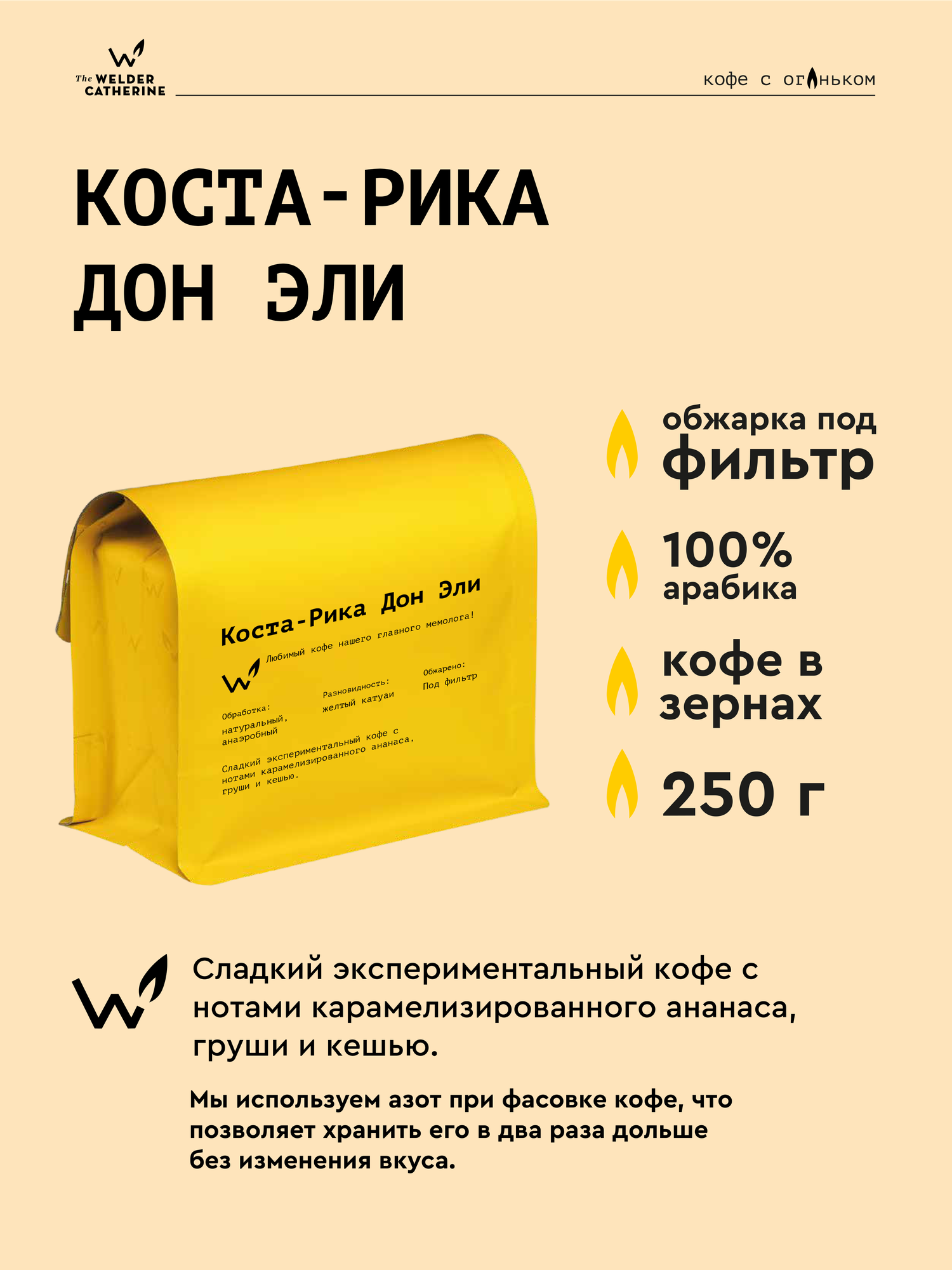 Купить Кофе в зернах Сварщица Екатерина Коста-Рика Дон Эли под фильтр — 250 г с доставкой по всей России. Кофе в зернах Сварщица Екатерина Коста-Рика Дон Эли под фильтр — 250 г: сравнение цен, характеристики, фото, актуальное наличие и цены.