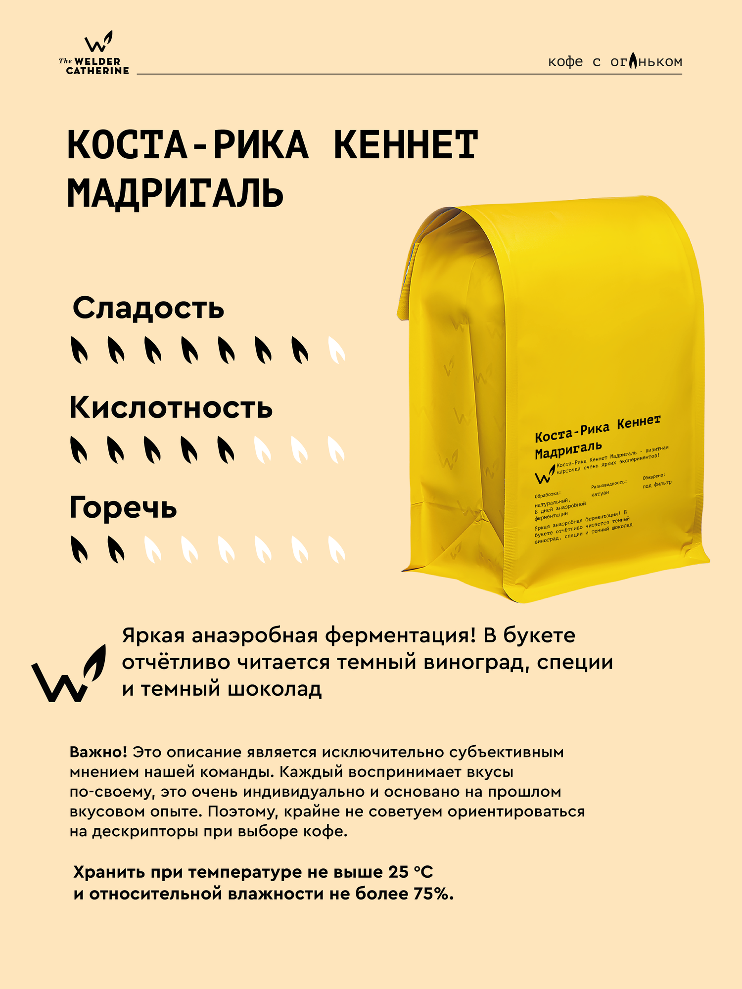 Кофе в зернах Сварщица Екатерина «Коста-Рика Кеннет Мадригаль» под фильтр — 1 кг: сравнение цен, характеристики, фото, актуальное наличие и цены.