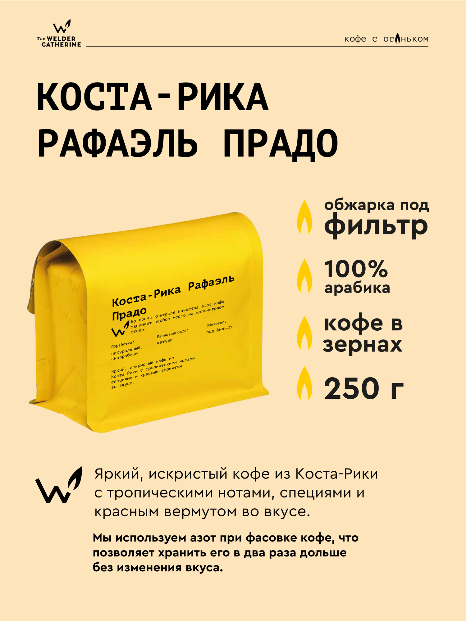 Кофе в зернах Сварщица Екатерина Коста-Рика Рафаэль Прадо под фильтр — 250 гр: сравнение цен, характеристики, фото, актуальное наличие и цены.