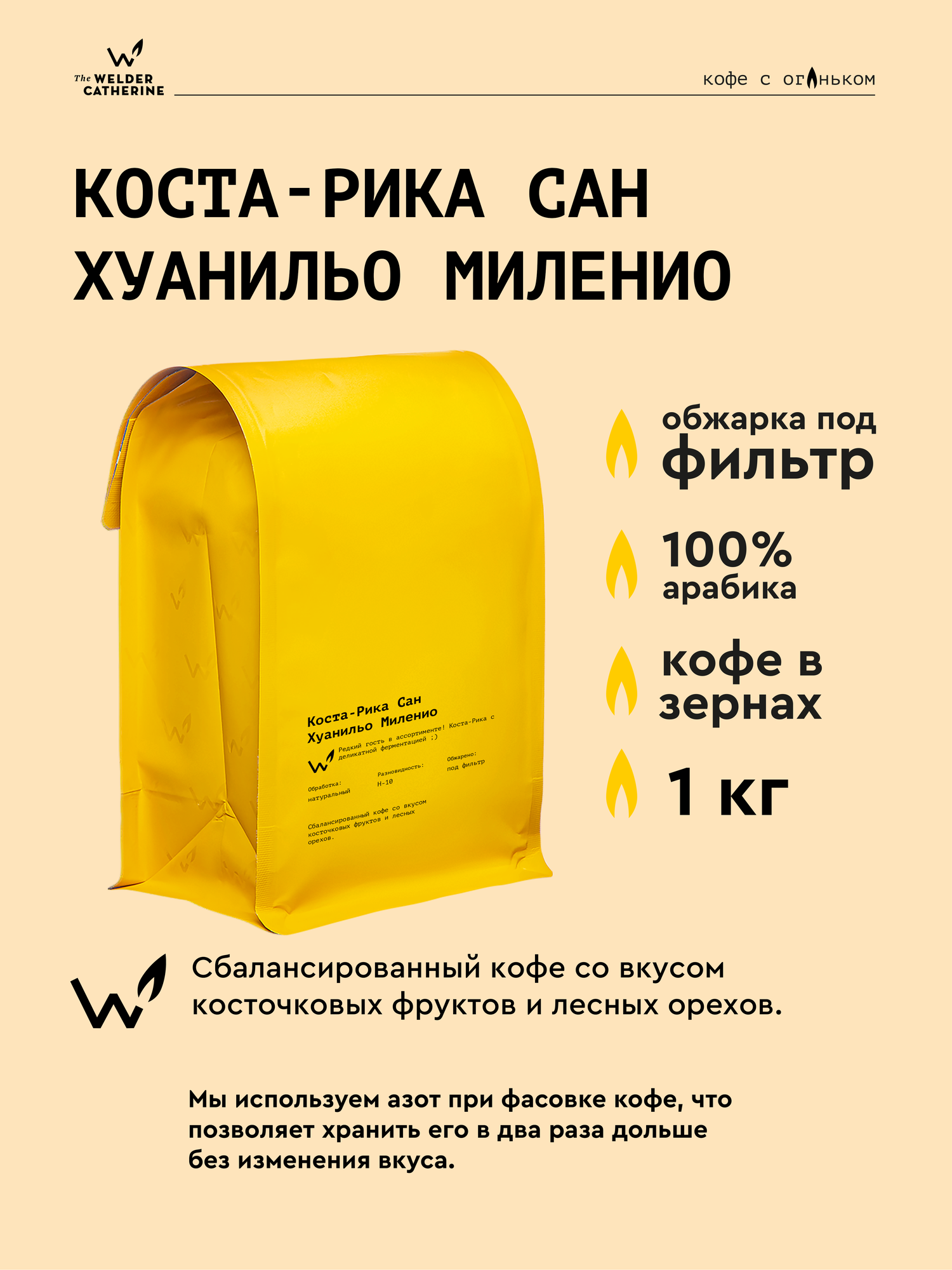 Купить Кофе в зернах Сварщица Екатерина Коста-Рика Сан Хуанильо Миленио под фильтр — 1 кг с доставкой по всей России.