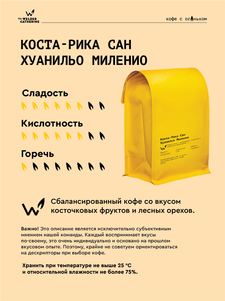 Кофе в зернах Сварщица Екатерина Коста-Рика Сан Хуанильо Миленио под фильтр — 1 кг: сравнение цен, характеристики, фото, актуальное наличие и цены.
